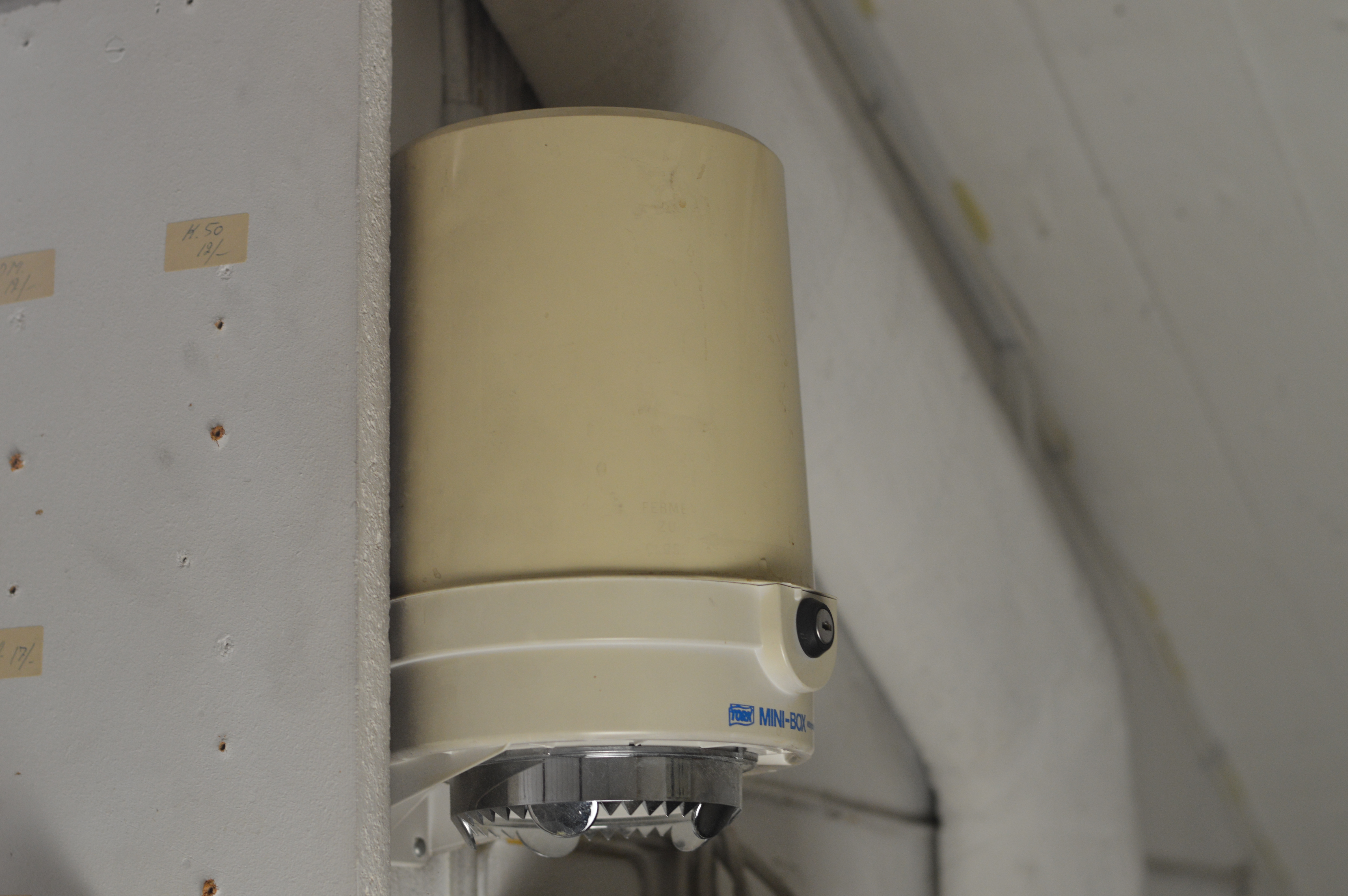 DESCRIPTIONHollow cylindrical container with open/close twist mechanism. Shiny reflective teeth-like edges around rubber flaps make up an opening in one end of the object. Has integrated mounting features. A lot of small details in the molded plastic
